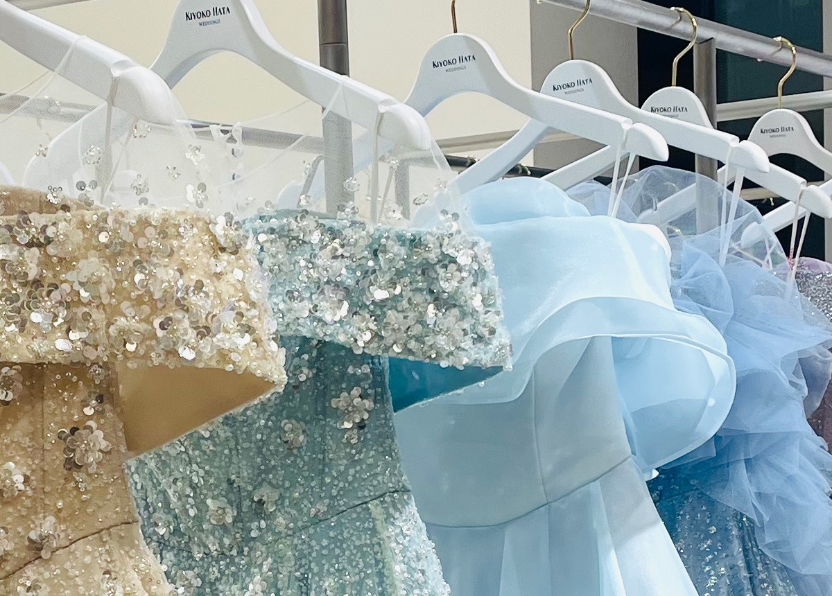 Inside the boutique, you will find a stunning array of wedding dresses and vibrant evening gowns elegantly displayed. The spacious room, with natural light, creates a relaxed and inviting atmosphere for selecting the perfect gown for your special day. The Kobe Boutique embodies the philosophy of KIYOKO HATA, drawing inspiration from the breathtaking beauty of nature in the creation of each dress. We look forward to the opportunity to welcome you and assist you in finding your dream gown.