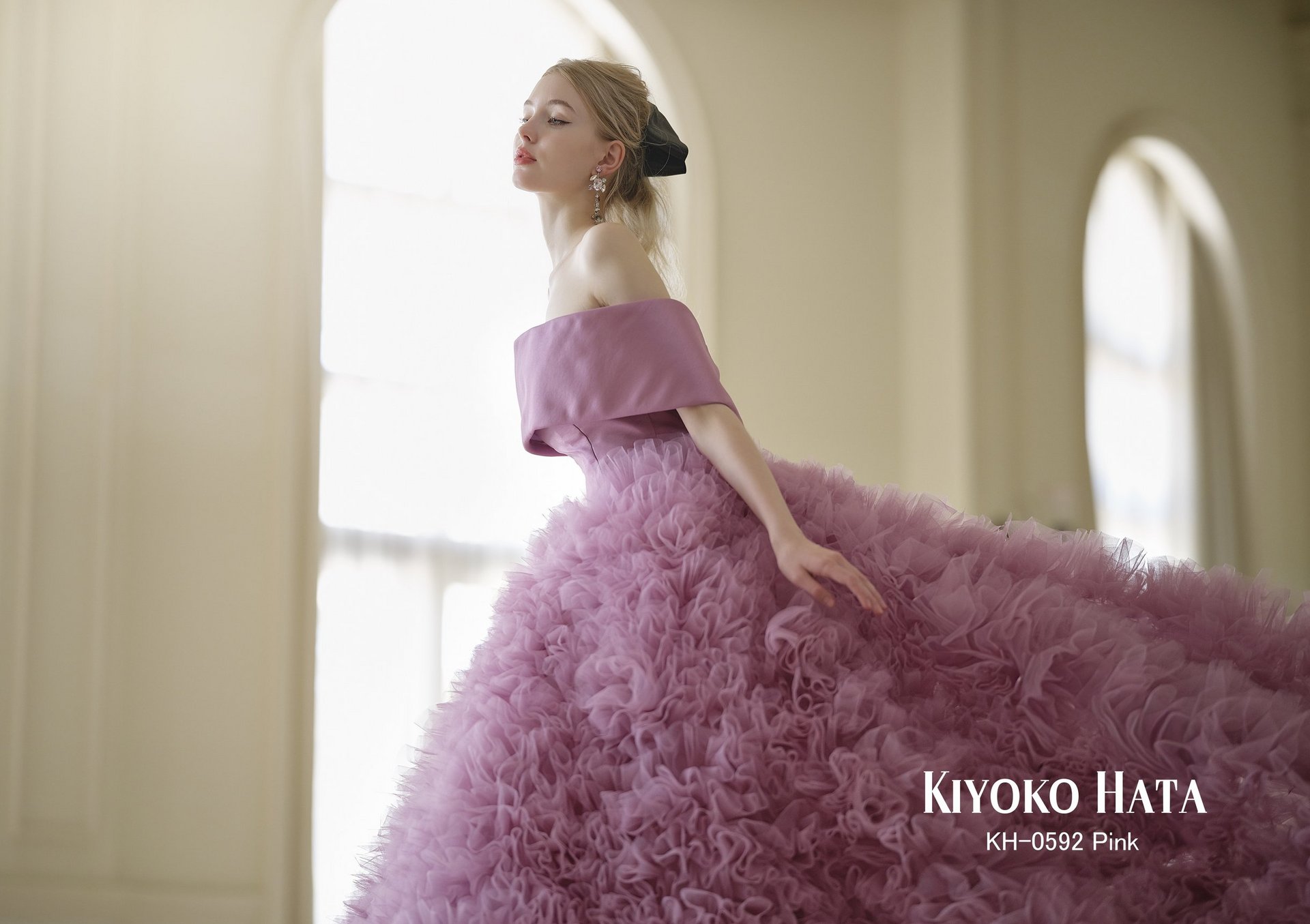 Designer KIYOKO HATA's unique commitment to delicate yet bold details gives these dresses a "dignified splendor." The beauty, which makes them "dresses you fall in love with" from every 360-degree angle, ensures the bride shines as the heroine of her most cherished moment. The instant you put on a KIYOKO HATA dress, you are filled with a sense of euphoria, as if you have been enchanted by the magic woven by light and water. It is a moment of release from the everyday, where nature's pure energy resonates with the bride's inner radiance, transforming a fleeting moment into an eternity. The new KIYOKO HATA dresses are born.